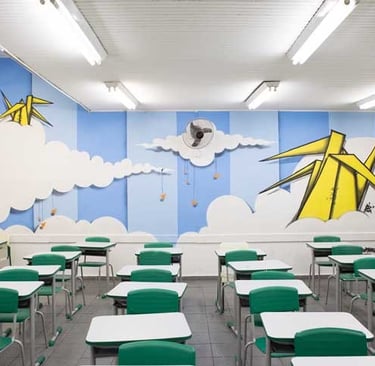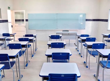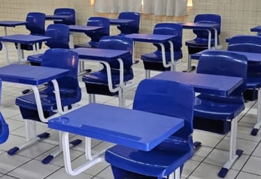 Trabalhamos com móveis de alta qualidade, garantindo durabilidade e conforto para os alunos.